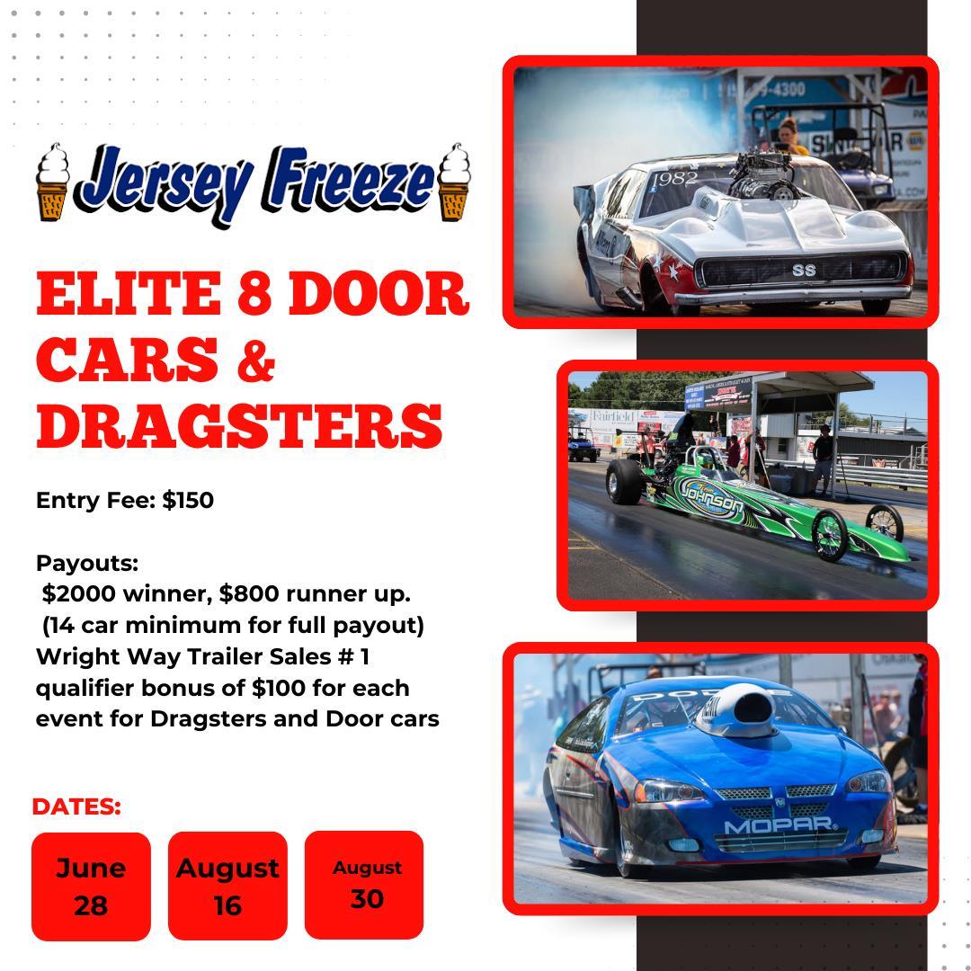 Wright Way Trailer Sales # 1 qualifier bonus of $100 for each event for Dragsters and Door cars